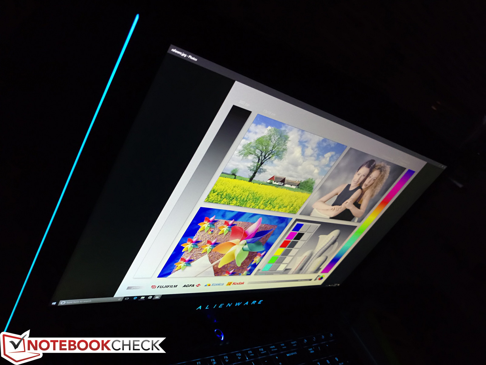 Die AlienFX Software erlaubt die Individualisierung der Hintergrundbeleuchtung in vier Zonen. Zusätzlich werden noch das Trackpad, das Alienware Logo sowie die Leisten an den Außenkanten des Notebooks beleuchtet. Im Gegensatz zu Notebooks mit individuell beleuchteten Tasten und 16,7 Millionen Farben ist man hier auf 20 Farben begrenzt. Andere Notebooks wie das Lenovo Y900 bieten beispielsweise auch mehr Beleuchtungszonen (7), und auch bei den aktuellen Aorus Laptops können die Tasten einzeln beleuchtet werden. Komischerweise lässt sich die Intensität der Beleuchtung nicht mit der Funktionstaste verändern, das ist nur via Schieberegler in der Software möglich (Rechtsklick auf das AlienFX-Symbol).