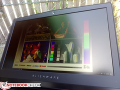 Unser Testgerät verwendet das matte QHD-Panel von AU Optronics (AUO1496), das wir bisher noch nicht getestet haben. Dell verspricht eine Helligkeit von 400 cd/m², was wir bei unserer Messung mit dem X-Rite Spektralfotometer zumindest für die Mitte des Bildschirms bestätigen können. In den Ecken lässt die Helligkeit jedoch nach, und der durchschnittliche Wert liegt bei rund 370 cd/m². Der Kontrast ist mit etwa 700:1 aber nicht besonders hoch, vor allem im Vergleich zu dem Chi-Mei-Panel im MSI GT73VR (>1.200:1). Diese Werte gelten aber nur für das QHD-Panel, die anderen Bildschirme für das Alienware 17 R4 erreichen vermutlich andere Werte.