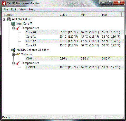 Von den Taktraten lässt Alienware erwartungsgemäß die Finger, 590 MHz (Kern), 900 MHz (Speicher) und 1180 MHz (Shader) entsprechen den Vorgaben. Der DDR3-Videospeicher ist mit 3072 MByte zwar mehr als ausreichend dimensioniert, allerdings hapert es etwas am Interface. 192 Bit sind inzwischen nicht mehr ganz zeitgemäß, ohne flottes GDDR5-VRAM können in Extremsituationen Limitierungen auftreten.