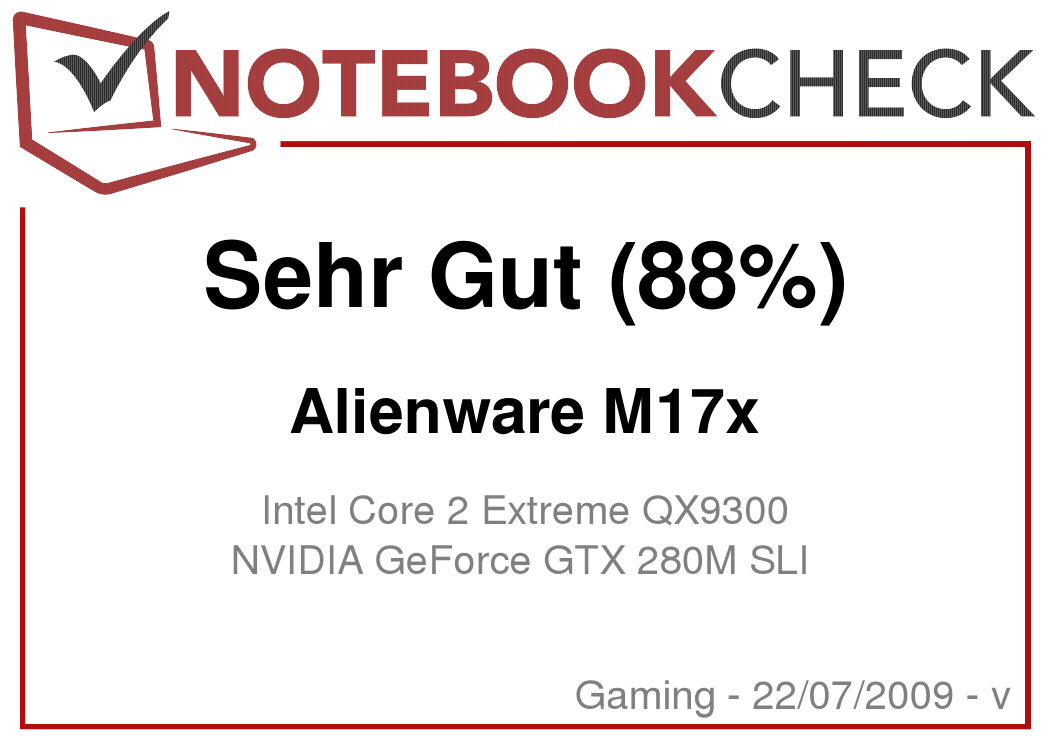 Insgesamt können sich diese Ergebnisse durchaus sehen lassen. Die Ergebnisse des vergleichbar ausgestatteten Cybersystem QX18, ebenso mit Geforce GTX 280M SLI Grafik, liegen in etwa im Bereich des Alienware M17x.