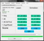 Im sequentiellen Bereich verliert das Solid State Drive zwar gegen manch größere 2.5-Zoll-Variante wie die Intel SSD 330 (siehe das Schenker XMG A502), mit 261 bzw. 162 MB/Sek (Lesen / Schreiben) werden andere mSATA-Modelle wie die OZC Nocti (vergleiche das One M73-2O) jedoch spürbar abgehängt. Bei kleinen Dateien muss sogar der RAID-0-Verbund des MSI GT70 einpacken. Die Zugriffszeit ist ebenfalls nicht von schlechten Eltern: 0.2 ms (Lesen) respektive 0.1 ms (Schreiben) sind erfreulich niedrig.