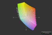 Der Kontrast wird dem High-End-Anspruch ebenfalls gerecht, 570:1 gewährleisten ein kräftiges und akzentuiertes Bild. Wie unsere Screenshots belegen, kann das Panel mit einer guten Abdeckung des sRGB-Farbraums auftrumpfen. Dank der glänzenden Displayoberfläche erscheinen die Farben besonders lebhaft.