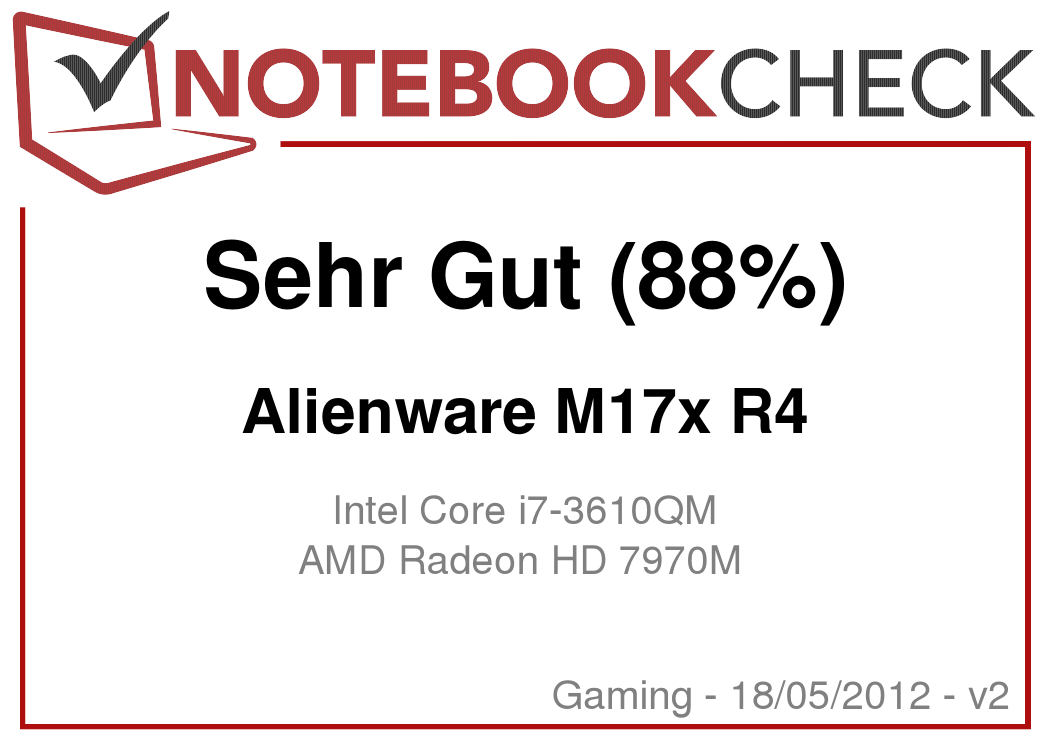 Fazit: Alienware schnappt sich zum wiederholten Male souverän die Gaming-Krone. Der zweite Platz gebührt aktuell dem Asus G75V, danach kommen die Barebones von Clevo (Schenker XMG P702) und MSI (GT70).