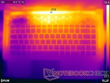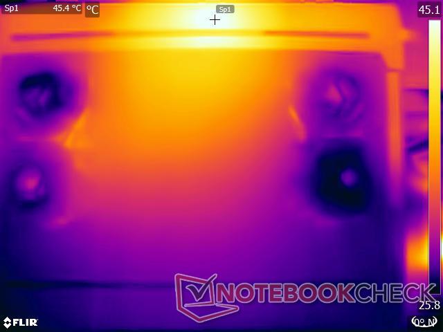 (+) Die Handballen und der Touchpad-Bereich erreichen maximal 33.4 °C und damit die typische Hauttemperatur und fühlen sich daher nicht heiß an.