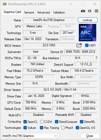 | Alldocube iWork GT Ultra Ultra 5 125H, Arc 7-Core | Lenovo ThinkPad X12 Detachable G2 Ultra 5 134U, Graphics 4-Core iGPU (Arrow Lake) | Chuwi Hi10 Max N100, UHD Graphics 24EUs (Alder Lake-N) | Minisforum V3 R7 8840U, Radeon 780M | Asus BR1104CGA-N00007XA N100, UHD Graphics 24EUs (Alder Lake-N) | |