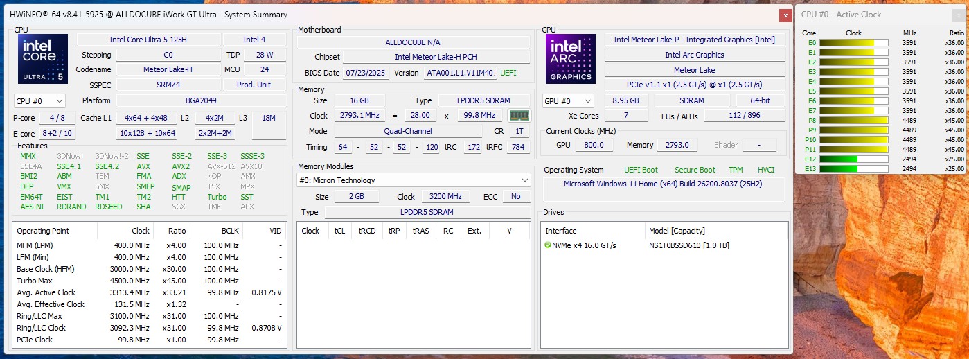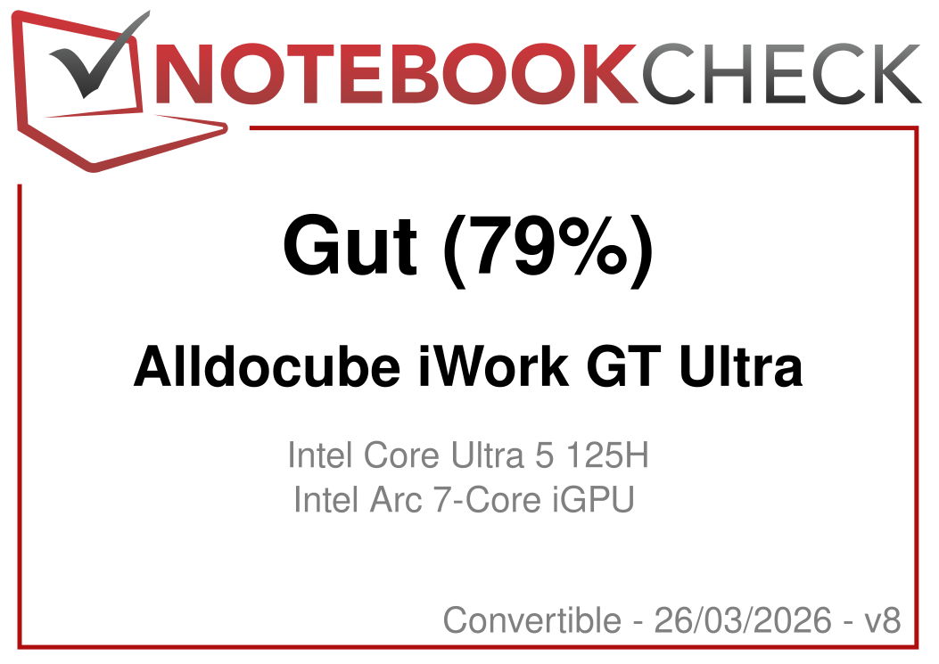 | Alldocube iWork GT Ultra Intel Core Ultra 5 125H ⎘ Intel Arc 7-Core iGPU ⎘ 16 GB RAM, 1024 GB SSD | Amazon: 799,99 € Listenpreis: 799€ | 870 g | 9.89 mm | 13.00" 2560x1600 232 PPI IPS | |