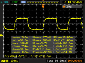 | 40 ms ... steigend ↗ und fallend ↘ kombiniert | ↗ 19 ms steigend | |
