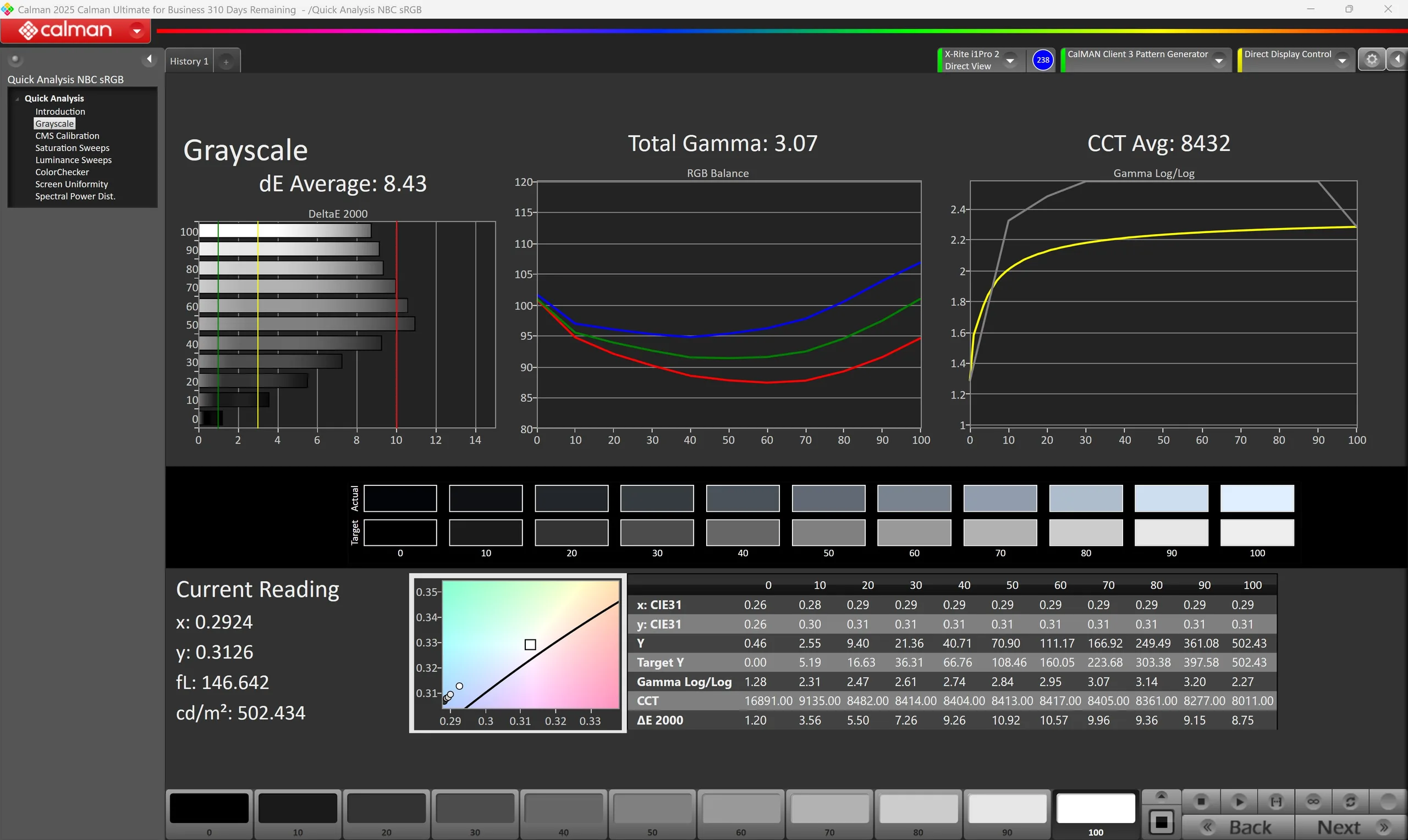 ΔE Greyscale Calman: 8.43 | ∀{0.09-98 Ø5}