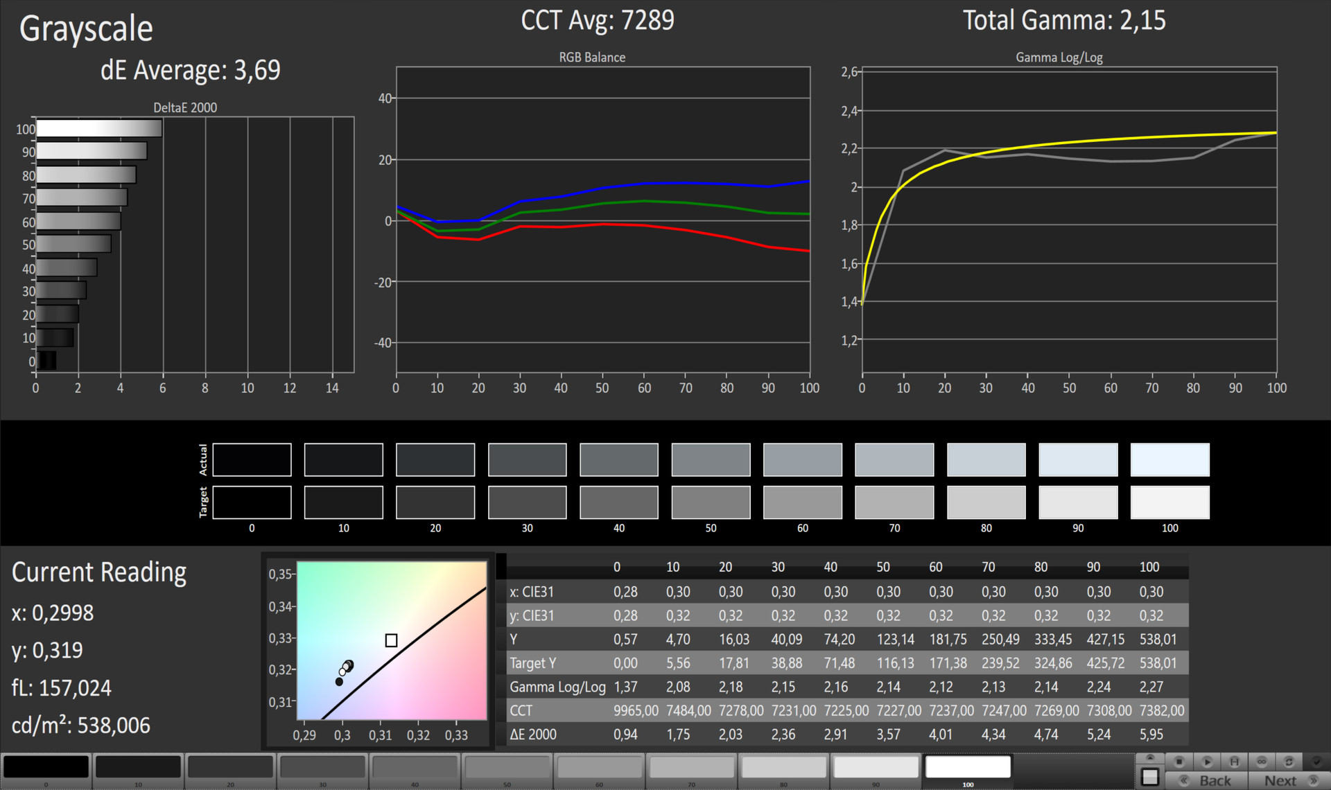 ΔE Greyscale Calman: 3.69 | ∀{0.09-98 Ø5}