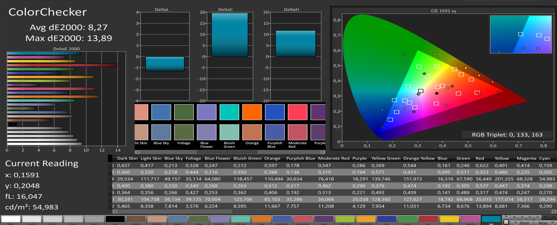 ΔE ColorChecker Calman: 8.27 | ∀{0.5-29.43 Ø4.78}