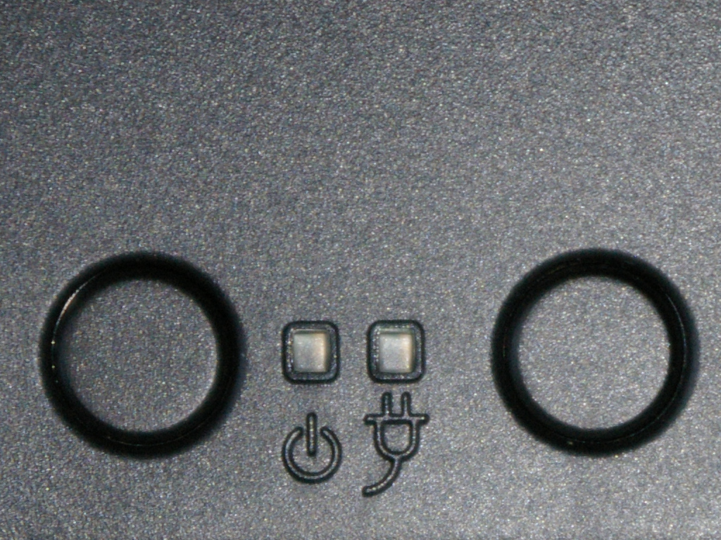 Auf der Oberseite des AX90 findet man den Einschaltknopf, den Status/Ladestands-Knopf und einige weitere LED’s. Dabei handelt es sich beispielsweise um eine Power LED, welche anzeigt ob das Gerät and das Stromnetz angeschlossen ist. Weiters gibt es eine Lade-LED und fünf Ladestandsanzeige-LED’s. Bei einem Druck auf den Status/Ladestands-Knopf leuchten diese auf - umso mehr davon erstrahlen, desto mehr Strom befindet sich im Akku.
