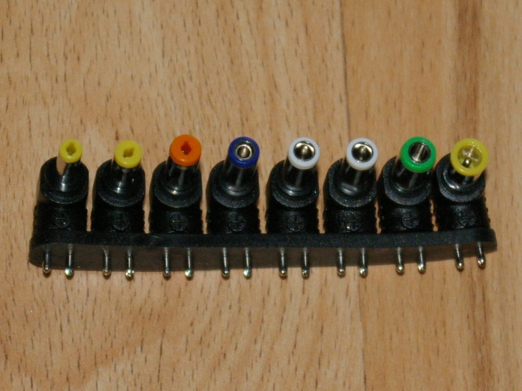 Im Lieferumfang des AX90 befinden sich nicht nur das Gerät selbst und ein passender Netzadapter, sondern auch noch einige weitere nützliche Utensilien. Zusätzlich dazu findet man ein Kabel, mit dem der Akku mit dem Stromanschluss des Notebooks verbunden werden kann. Um das für möglichst viele Modelle gewährleisten zu können, sind weiters auch noch acht verschiedene Adapter für diverse Netzanschlussgrößen und Modelle mit dabei.