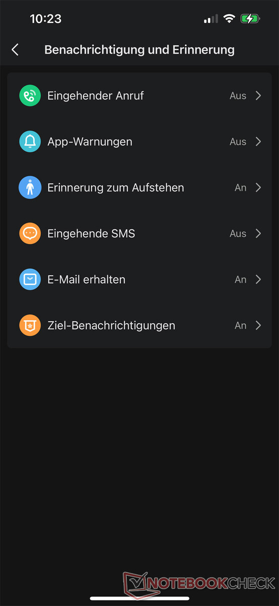 Eine Telefonfunktion bietet diese günstige Smartwatch wenig überraschend nicht. Sie informiert aber zumindest über eingehende Anrufe. Benachrichtigungen vom Smartphone können auf Wunsch in Echtzeit übertragen werden. Welche Apps sich melden dürfen, lässt sich in der App mit groben Bereichsfiltern einstellen.