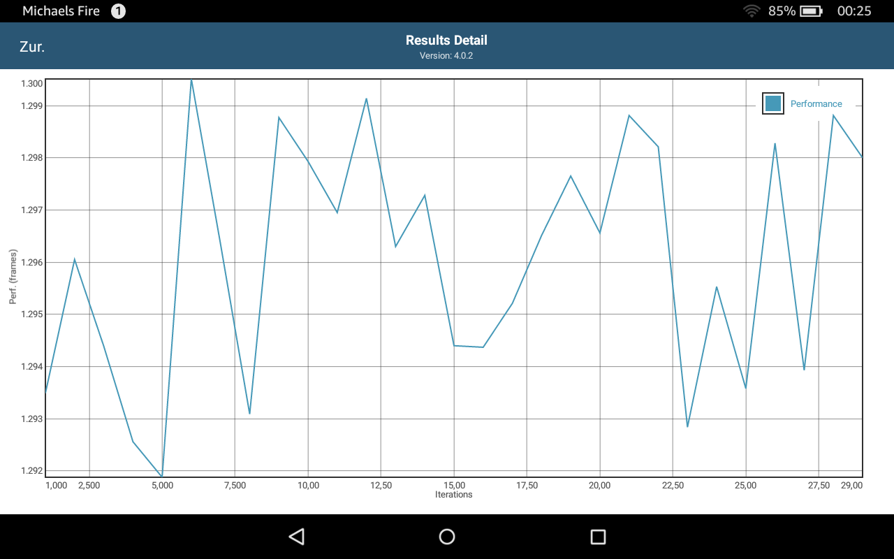 Den Stresstest mit dem Akkutest der App GFXBench, bei dem der T-Rex-Test dreißigmal nacheinander abläuft, absolviert das Testgerät mit Bravour. Ein temperaturbedingtes Throttling tritt nicht auf.