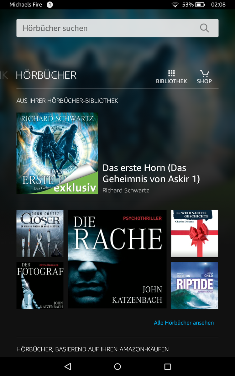Im Gegensatz zum Kindle Fire HD 6 besitzt das Amazon Fire HD 8 Stereolautsprecher, die im Landscape-Modus an der gerundeten Unterkante positioniert sind. Liegt das Tablet auf dem Tisch, ist durch die erweiterte Resonanzfläche sogar ein Anflug von Bass vernehmbar. Generell ist der Klang recht ausgewogen, die Maximallautstärke könnte aber höher sein. Dennoch empfehlen wir, für den Genuss der diversen Amazon Mediendateien eine externe Soundlösung an die 3,5 mm Klinke anzuschließen. Hier stimmt auch die Maximallautstärke, das Grundrauschen ist sehr gering.