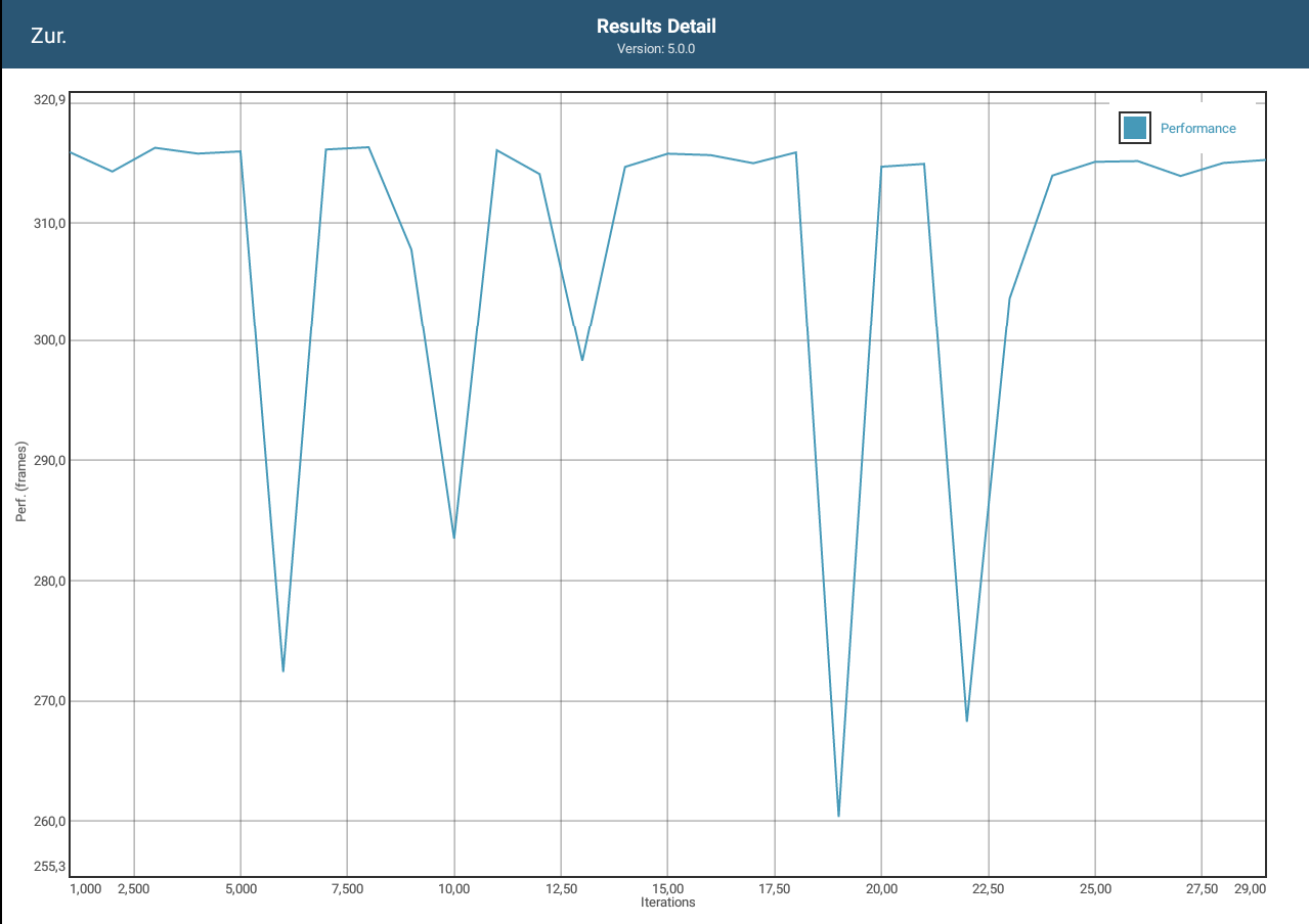 Im Test bleibt das Amazon Fire HD 8 (2018) mit einem Spitzenwert von 34,2 °C angenehm kühl. Wie der Akkutest von GFXBench zeigt, tritt unter Last kein Throttling auf. Beim aufwändigen Manhattan-Szenario, das der GFXBench 30-mal hintereinander rendert, fällt die Framerate zwischendurch zwar immer wieder kurzzeitig ab, bleibt aber bis zum Schluss insgesamt konstant hoch.