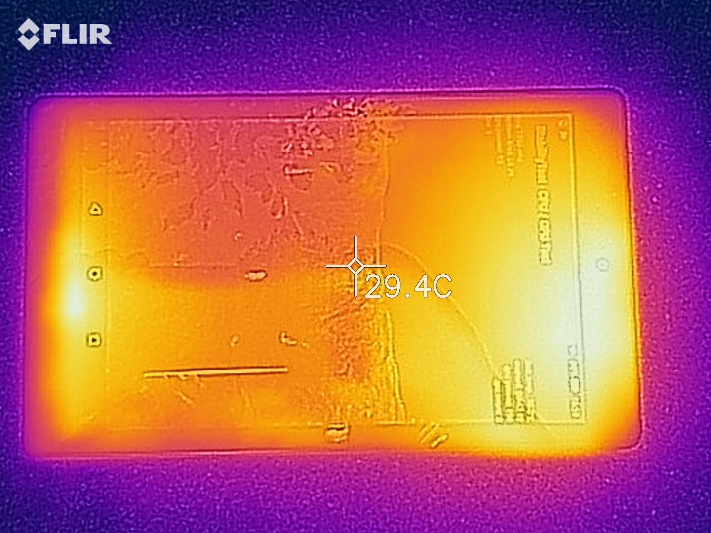 (+) Auf der Unterseite messen wir eine maximalen Wert von 34.2 °C (im Vergleich zum Durchschnitt von 33.2 °C).