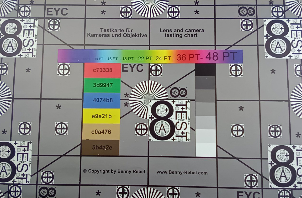 Bildschärfe und Details der Aufnahmen sind bei viel Licht nicht viel ansprechender als mit der Frontcam, wobei die Schärfe in den Aufnahmen etwas besser ist. Die Farbwiedergabe unter Kunstlicht und Zuhilfenahme des X-Rite ColorChecker Passports kann als solide, aber deutlich aufgehellt beschrieben werden.