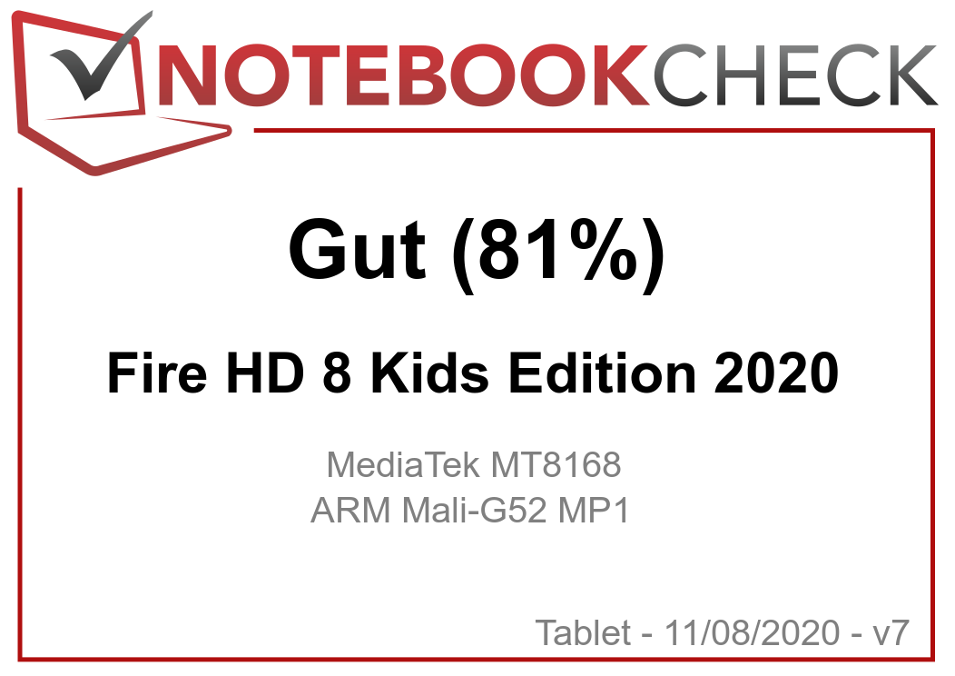 | 81.3 % v7 (old) | v7 (old) | 08 / 2020 | Amazon Fire HD 8 Kids Edition 2020 MT8168, Mali-G52 MP1 | 355 g | 32 GB eMMC Flash | 8.00" | 1280x800 | |