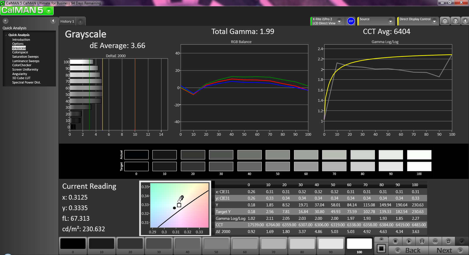 ΔE Greyscale Calman: 3.66 | ∀{0.09-98 Ø5}
