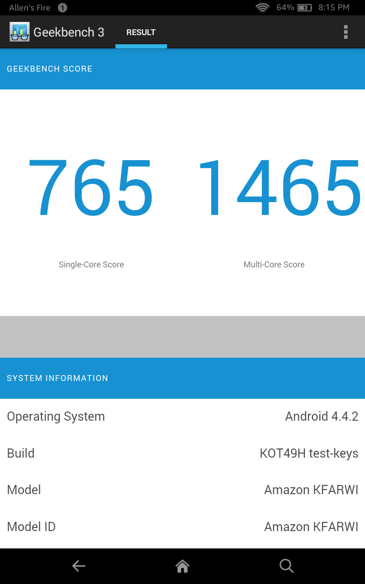 Dabei ist die Systemleistung gar nicht mal unerträglich langsam, aber Anwender, die schnellere und teurere Tablets wie das Nexus 7 oder das iPad gewohnt sind, werden beim Fire HD 6 die unmittelbaren Reaktionen vermissen. Besonders enttäuschend ist der Vergleich mit dem rasanten Snapdragon 800-SoC, der beim letztjährigen HDX 7 zum Einsatz kam. Das 6-Zoll-Tablet hätte deutlich von einem schnelleren Prozessor profitiert.