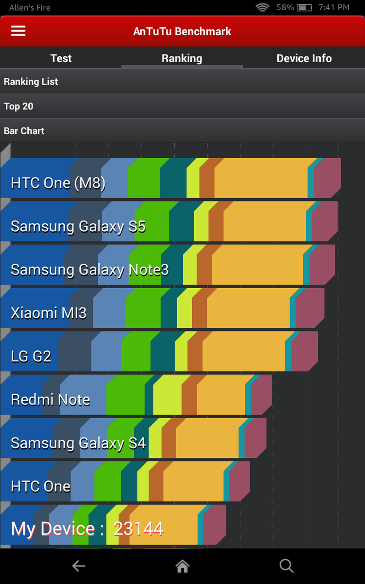 Wo wir gerade von Apps sprechen: Android Apps aus dem Play Store werden offiziell nicht unterstützt. Allerdings lassen sie sich über Umwege installieren, denn Fire OS beruht auf Android. Es gibt jedoch keine Garantie dafür, dass diese Anwendungen auf dem Fire HD 6 problemlos laufen oder überhaupt gestartet werden können, Anwender könnten also enttäuscht sein, wenn ihre bevorzugten Apps auf dem Amazon-Gerät nicht funktionieren. Auch einige unserer Benchmarks aus dem Play Store, darunter Epic Citadel, Anomaly 2 sowie Basemark X 1.1, konnten nicht gestartet werden. Zudem sind einige browserbasierte Benchmarks wie Browsermark 2.1, Peacekeeper und Octane V2 zurzeit nicht mit dem Silk Browser kompatibel.