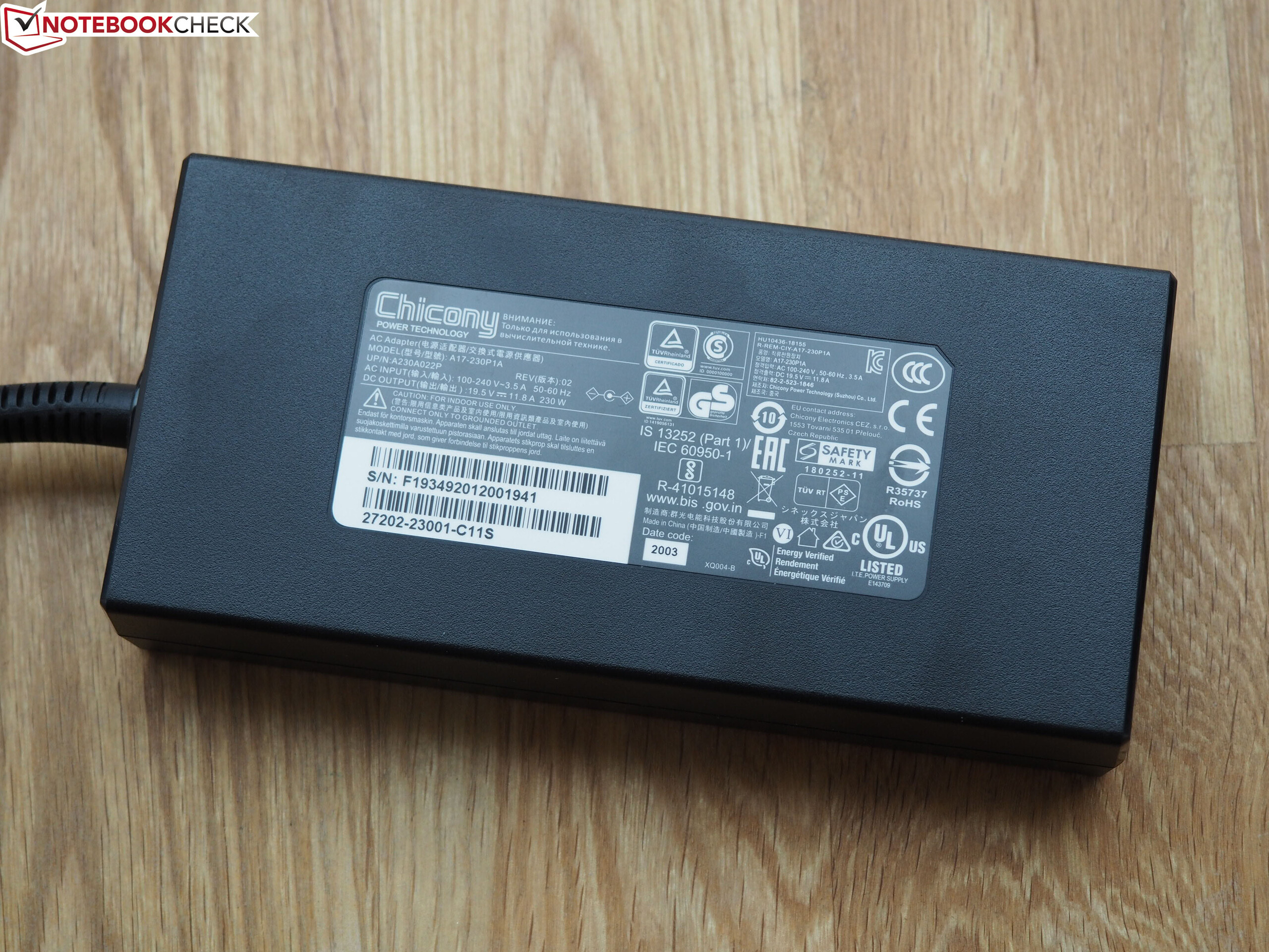 Als Zubehör liegen dem Aorus 17G ein Quick Start Guide und ein rund 730 g schweres 230-Watt-Netzteil bei.
