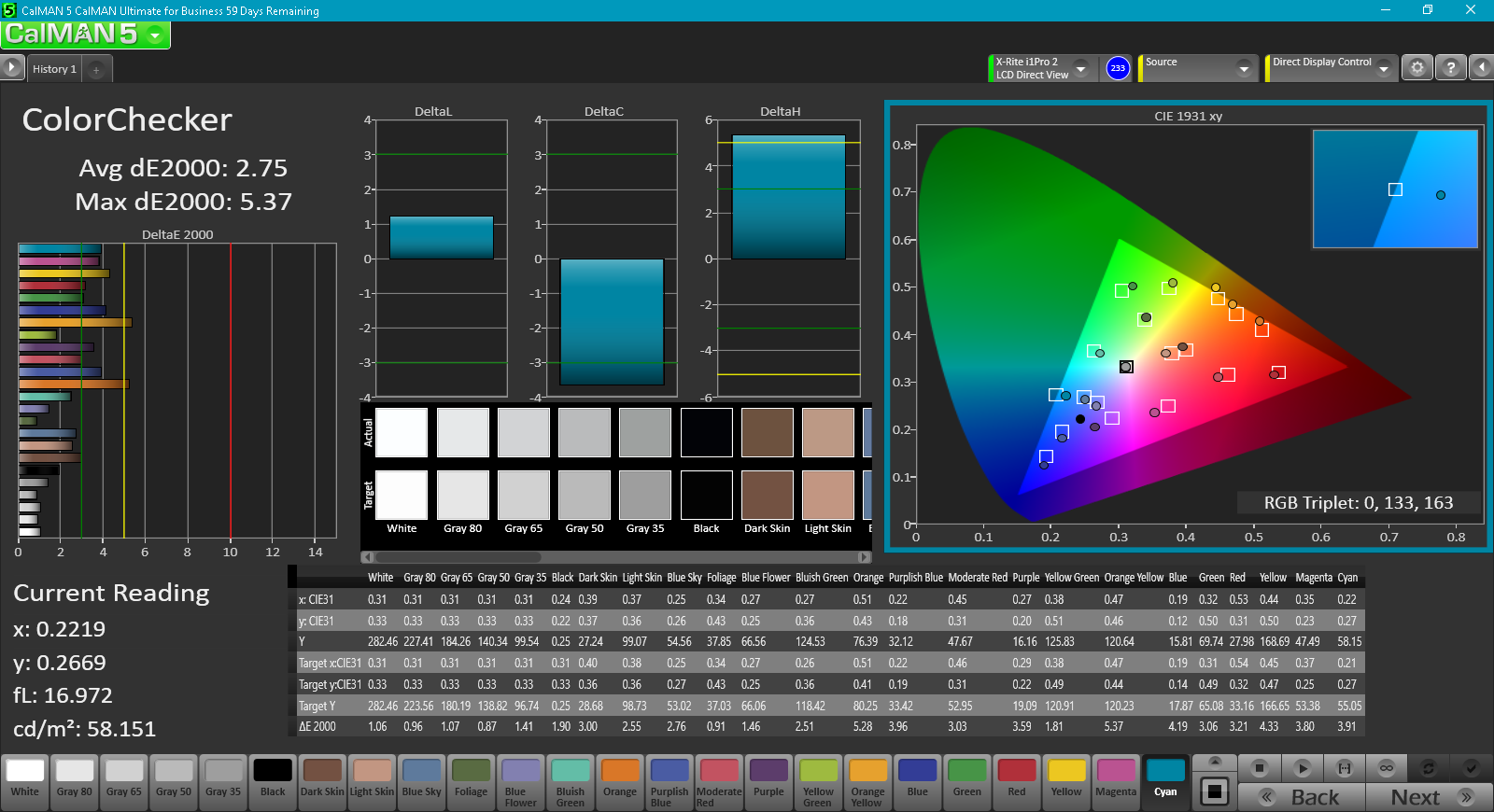 | AdobeRGB 1998 Coverage (%) | 62.5 | 60.8 -3% | 69.7 12% | 66.9 7% | 61.8 -1% |
