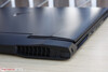 Etwas überraschend muss das X5 v6 ohne Thunderbolt 3 auskommen, was im Vergleich mit der Konkurrenz ein Nachteil ist. Leider gibt es auch keinen einzigen USB-A-Stecker auf der linken Seite des Gehäuses und die Anschlüsse auf der Rückseite sind mitunter schwer zu erreichen. Der VGA-Ausgang wurde gestrichen, da Nvidia den alten Standard seit dem Pascal-Update nicht mehr unterstützt, wobei man die Umrisse des Steckers am Notebook noch erkennen kann.