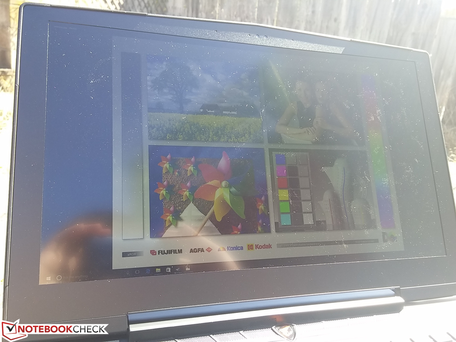 Die Farbraumabdeckung liegt bei 56 Prozent AdobeRGB bzw. 86 Prozent sRGB. Bei den Konkurrenten gibt auch es Panels mit voller sRGB- oder sogar AdobeRGB-Abdeckung, wie es beispielsweise bei einigen Geräten von Clevo oder der UX-Serie von Asus der Fall ist, doch beim Spielen spielt die Farbraumabdeckung nur eine untergeordnete Rolle.