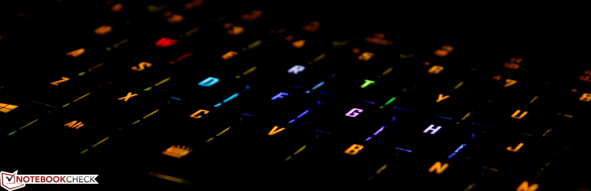 Das Tippgefühl der Chiclet-Eingabe unterscheidet sich nicht von den Vorgängern. Abgesehen von dem etwas knappen Tastenhub bedeutet das ein ordentliches Feedback und insgesamt eine zufriedenstellende Tastatur. Im Vergleich zu den Steelseries-Modellen bei MSI wackeln die einzelnen Tasten etwas mehr herum. Die Spalte zu den Makrotasten ist nun etwas größer ausgefallen und lässt sich damit leichter bedienen als noch beim X5S Plus.