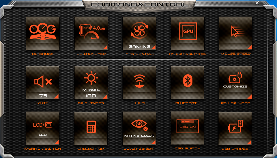 Gigabytes vorinstallierte Command-&-Control-Software (Name und Logo ähneln einem alten Strategie-Titel) ist ein wirklich nützliches Tool. Grundsätzlich bietet es schnellen Zugang zu Einstellungen wie der Lautstärke, der Bildschirmhelligkeit, den Funkverbindungen usw.