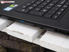 Externe Displays lassen sich an den drei digitalen Bildausgängen anschließen. Neben einem Mini-DisplayPort enthält das Gaming-Notebook auch einen HDMI-2.0-Port (4K @60 Hz) und einen zweiten HDMI-Anschluss, den der Hersteller Surround-Port nennt. Kurios: Der per Gummischoner versiegelte VGA-Port war bei unserem Testgerät ein Dummy. Die Anordnung der Schnittstellen ist aufgrund der nach hinten und zur Seite blasenden Lüfter nicht perfekt. Bei der Nutzung einer Maus können sowohl Links- als auch Rechtshänder mit angesteckten Kabeln in Kontakt kommen.