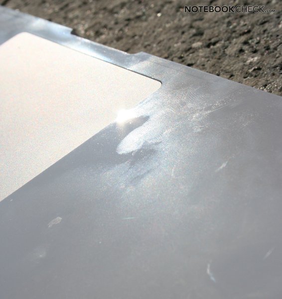 Trotz des Einsatzes von Polykarbonat (hochwertiger Kunststoff) statt Aluminium ist die Stabilität des Gehäuses sehr gut. Nur im Bereich des Slot-in Laufwerks gibt das Gehäuse bei Druck etwas nach. Zum Knarren oder Durchbiegen konnten wir unser Testmodell nicht bewegen.