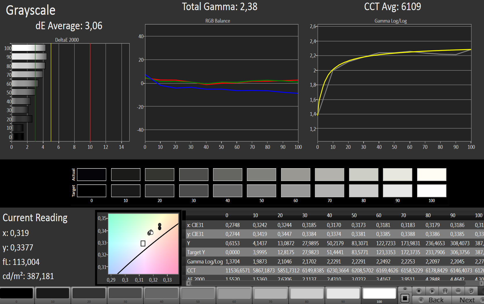 ΔE Greyscale Calman: 7.26 | ∀{0.09-98 Ø5}