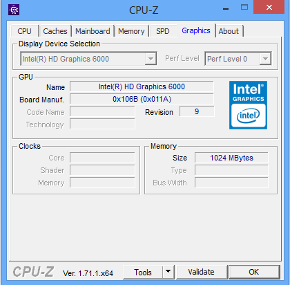 Eine weitere große Neuerung der Broadwell-Architektur ist die interne Intel HD Graphics 6000 Prozessorgrafiklösung. Diese soll sogar 20 - 25 % mehr Leistung gegenüber ihrem Vorgänger der Intel HD Graphics 5000 erreichen. Weiterhin werden wichtige Standards wie DirectX-11.2-API, OpenCL 1.3/2.0 und OpenGL 4.3 unterstützt. Die Kerntaktrate liegt laut unserer Messung bei 950 MHz.