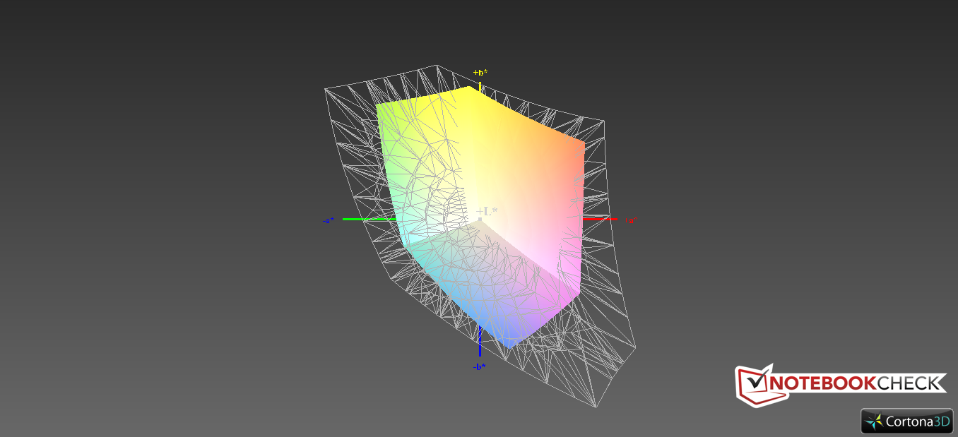 Der darstellbare Farbraum reicht nicht für einen professionellen Grafikereinsatz aus (AdobeRGB 39,8 % und sRGB 55,2 %). Das verwendete TN-Panel verfügt bereits ab Werk über eine gute Farbkalibrierung unter Mac OS X. Einen Blaustich können wir im Auslieferungszustand also nicht erkennen. Die Abweichung der Graustufen liegt bei geringen 3,06 und die der Farben bei 3,23. Nach der Kalibrierung minimiert sich der DeltaE-Wert der Graustufen laut CalMAN-Analyse auf 0,81 und der Farben auf 1,59. Für ein TN-Panel sind diese Werte schon ziemlich ordentlich und übertreffen einige IPS-Panels.