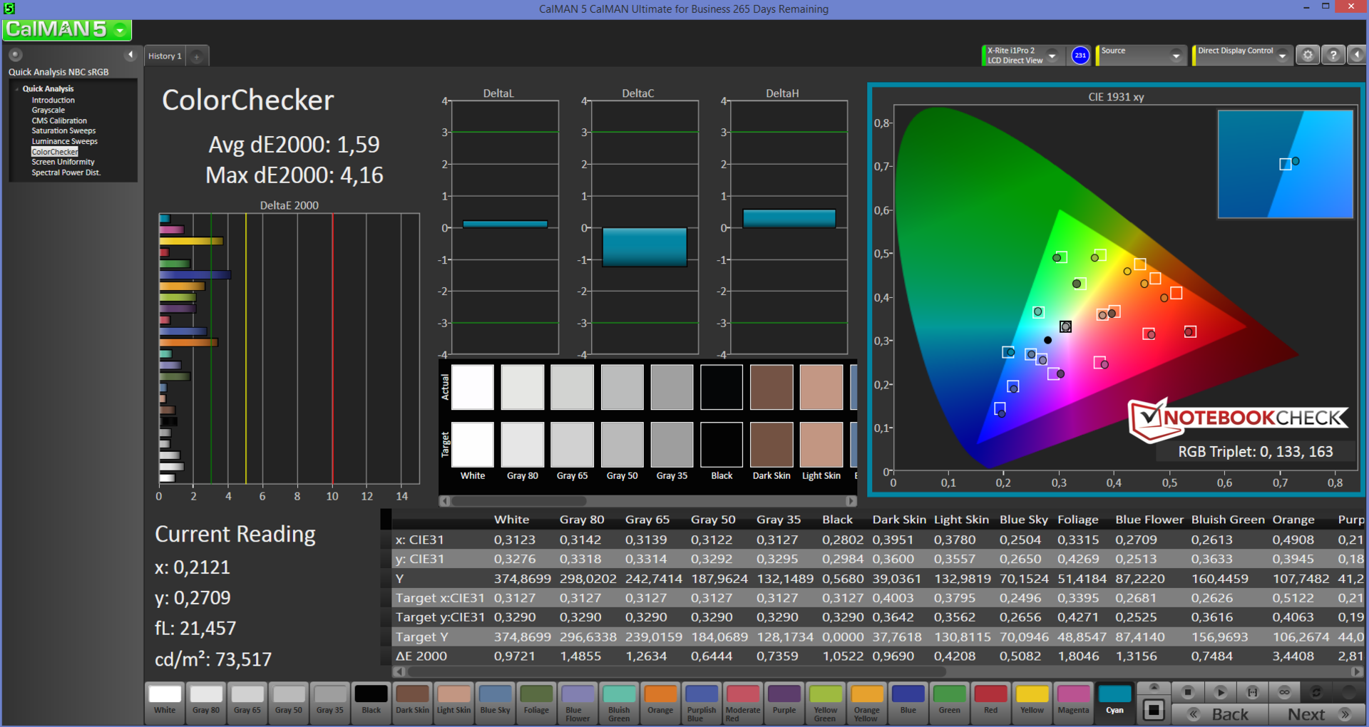 | Delta E Graustufen * | 3.06 | 7.26 -137% | 2.8 8% |