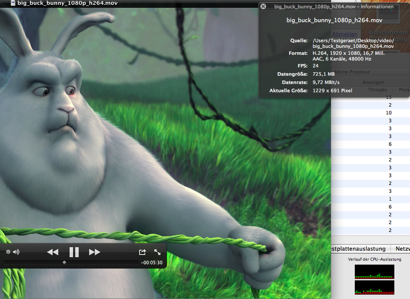 Bei H.264 kodierten MPEG4 Videos werden in beiden Betriebssystemen von der GPU dekodiert und erzeugen so kaum CPU Last.