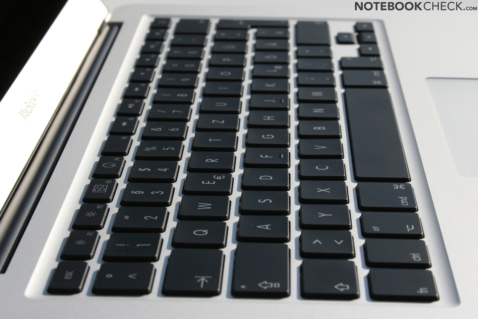 Wie bei allen aktuellen MacBooks kann die schwarze Tastatur durch seine guten Eigenschaften punkten. Trotz des kurzen Hubs lässt sich ermüdungsfrei damit arbeiten. Da die Tasten direkt mit dem Unibodygehäuse verschraubt sind, gibt es kein lästiges Durchbiegen oder Klappern. Das Layout ist wie bei Apple üblich genormt und für Windows User etwas ungewohnt.