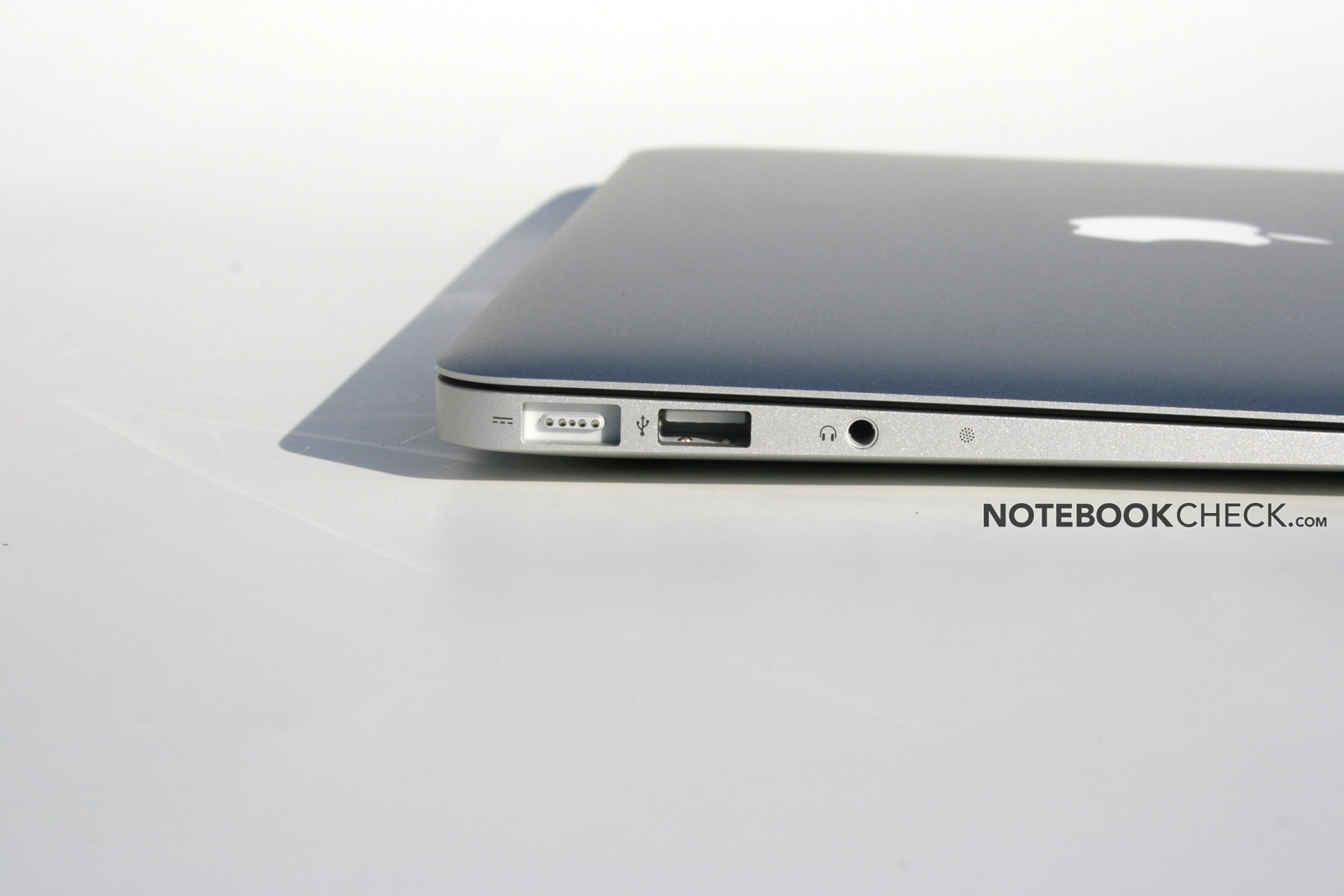 Die geringen Abmessungen und das Gewicht erkauft sich der User mit dem teuren Preis und der kaum vorhandenen und künstlich erschwerten Aufrüstmöglichkeiten. Auch bei den Anschlüssen geizt das MacBook Air, im Vergleich zum Vorgänger wurde es jedoch deutlich aufgewertet.