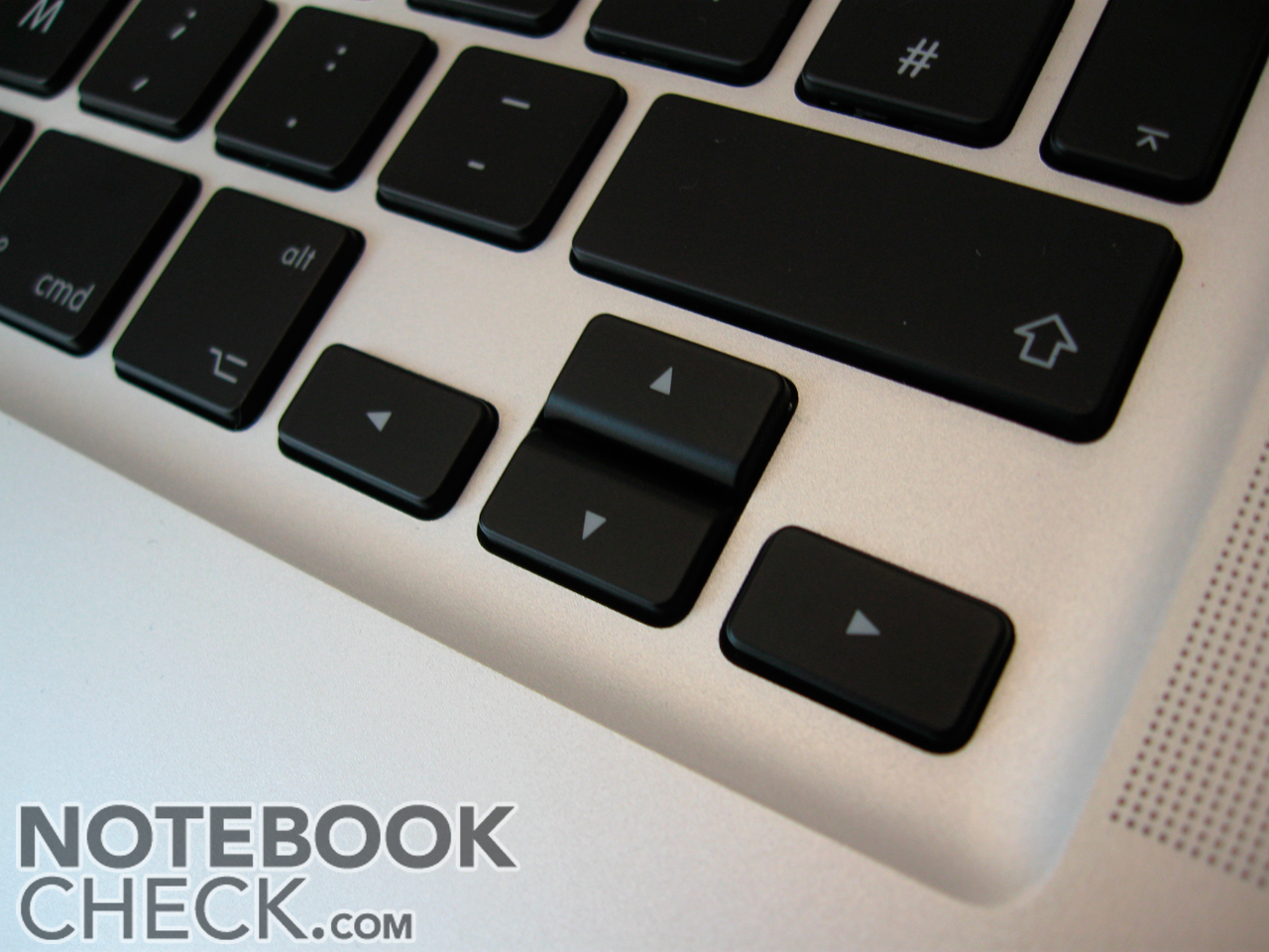 Das Layout der Apple Tastatur ist für Mac OS X gut gelungen. Im Test war ein sofortiges blindes 10-Fingerschreiben ohne Probleme möglich. Geblieben sind die kleinen Pfeiltasten (gerade für Spieler etwas unangenehm) und die dünne Entertaste.