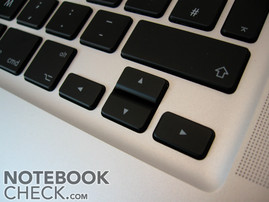 Das neue Keyboard des MacBook basiert ebenfalls auf die Vorarbeit des MacBook Air und ist mit der Tastatur des neuen MacBook Pro identisch. Die einzelnen Tasten wie beim Vorgänger MacBook direkt in das Gehäuse eingelassen und bieten einen weichen Anschlag mit spürbarem Druckpunkt. Dank zahlreicher Verschraubung der Tastatureinheit mit dem Fullbody sitzen die Tasten sicher im Gehäuse und klappern nicht. Auch ein Durchbiegen ist dank der Aluminiumhülle nicht möglich. Im Vergleich zu der optisch ähnlichen Tastatur im MacBook Air war der Tastenanschlag im Test etwas weicher.