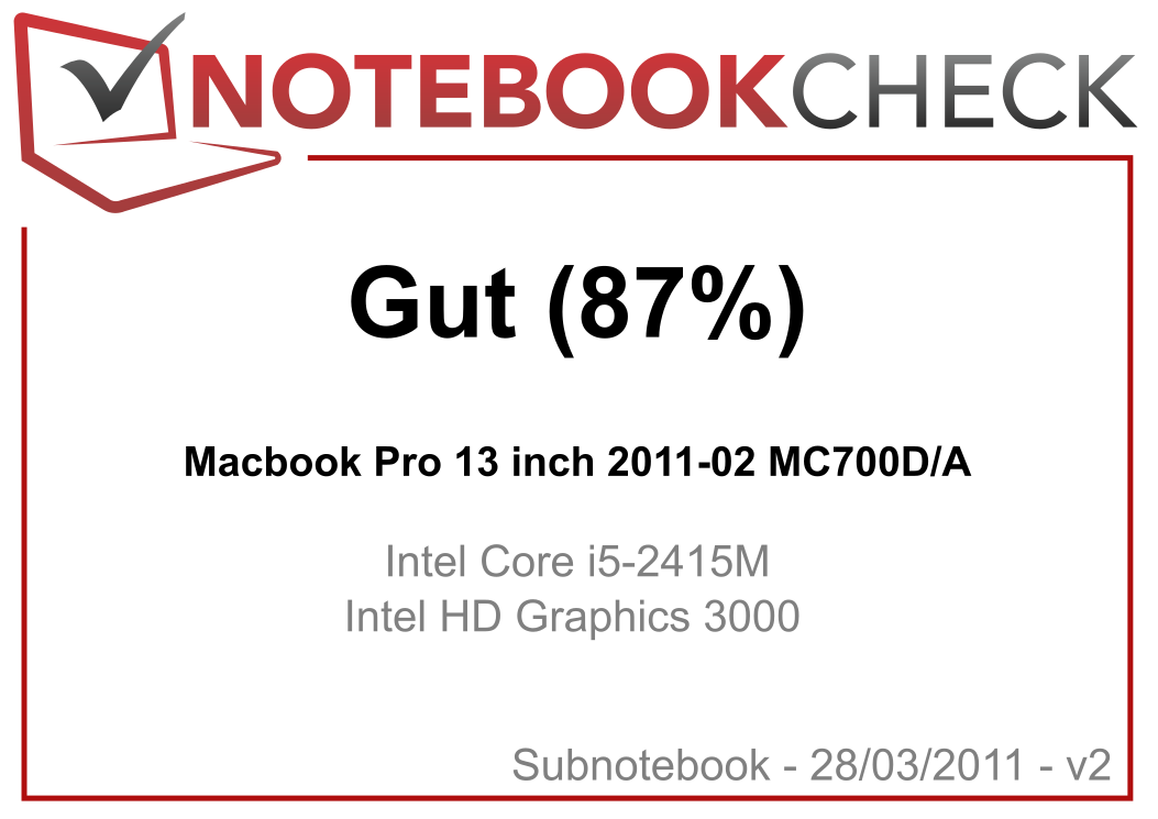 Test Apple MacBook Pro 13 Early 2011 (2.3 GHz Dual-Core, glare)