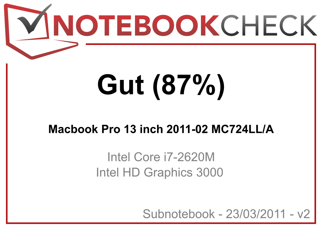 Test Apple MacBook Pro 13 Early 2011 (2.7 GHz Dual-Core, glare)