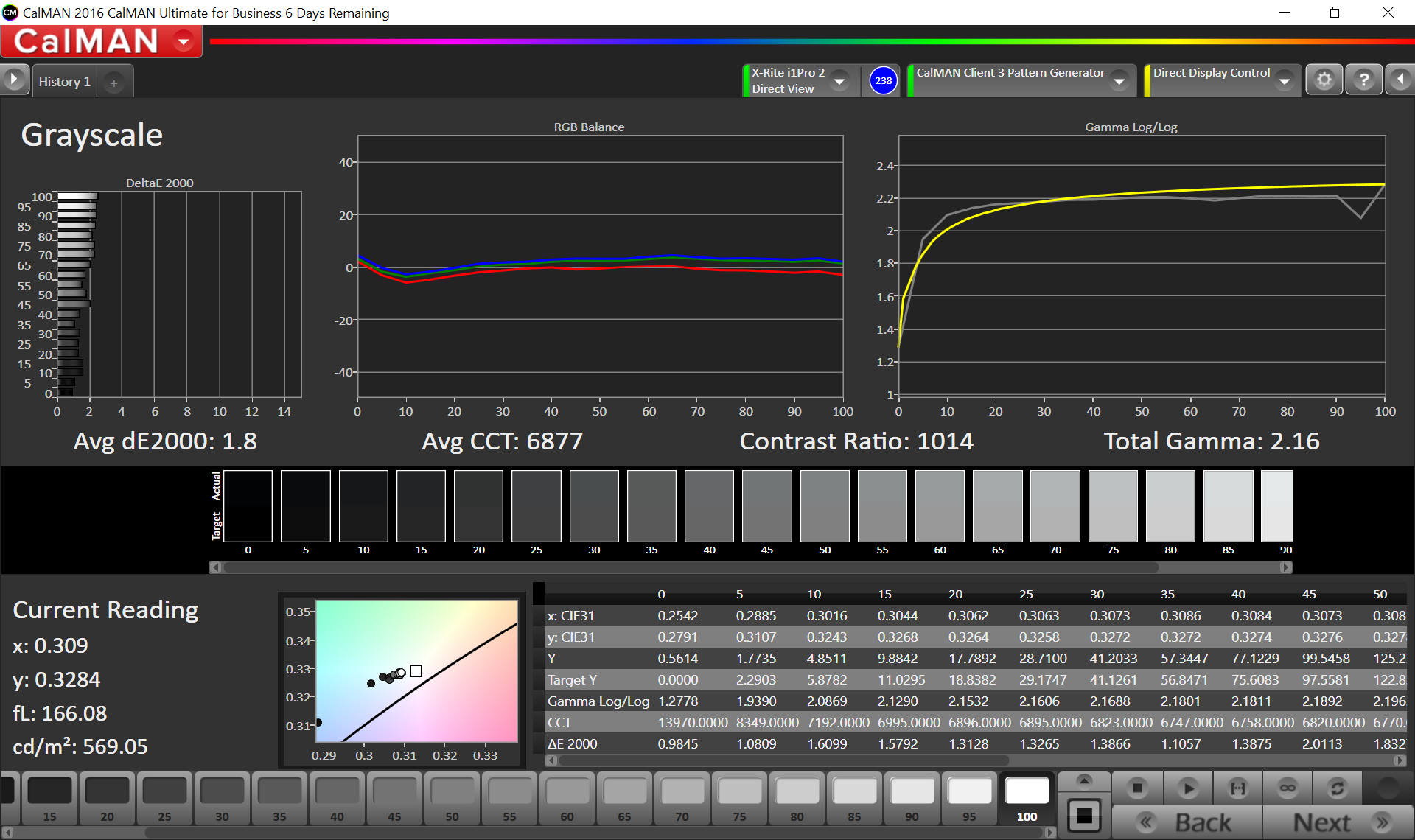 ΔE Greyscale Calman: 1.8 | ∀{0.09-98 Ø5}