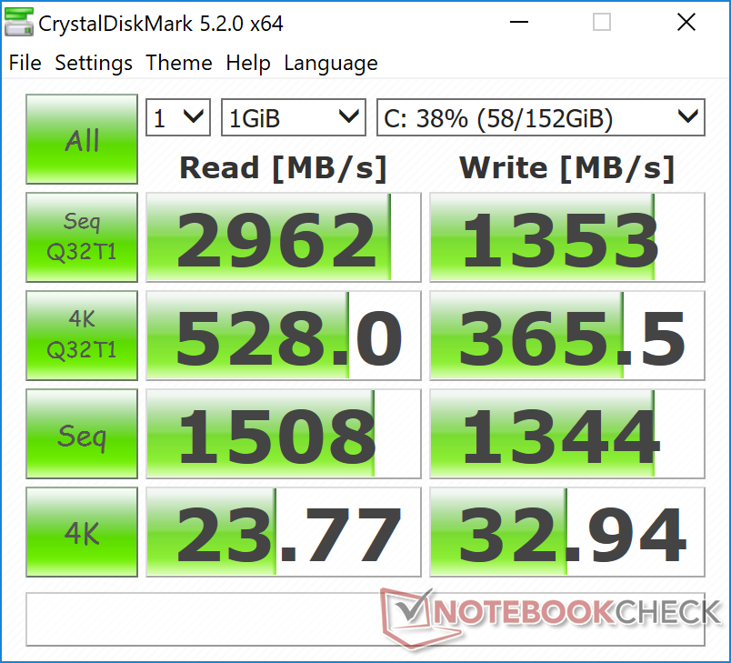 | Apple MacBook Pro 13 2017 Touchbar i5 Iris Plus Graphics 650, i5-7267U, Apple SSD AP0256 | Apple MacBook Pro 13 2016 (2.9 GHz) Iris Graphics 550, 6267U, Apple SSD AP0256 | Apple MacBook Pro 13 2016 Iris Graphics 540, 6360U, Apple SSD AP0256 | Lenovo ThinkPad X1 Carbon 2017-20HQS03P00 HD Graphics 620, i7-7500U, Samsung PM961 NVMe MZVLW512HMJP | Dell XPS 13 9360 QHD+ i5 HD Graphics 620, i5-7200U, Toshiba NVMe THNSN5256GPUK | |