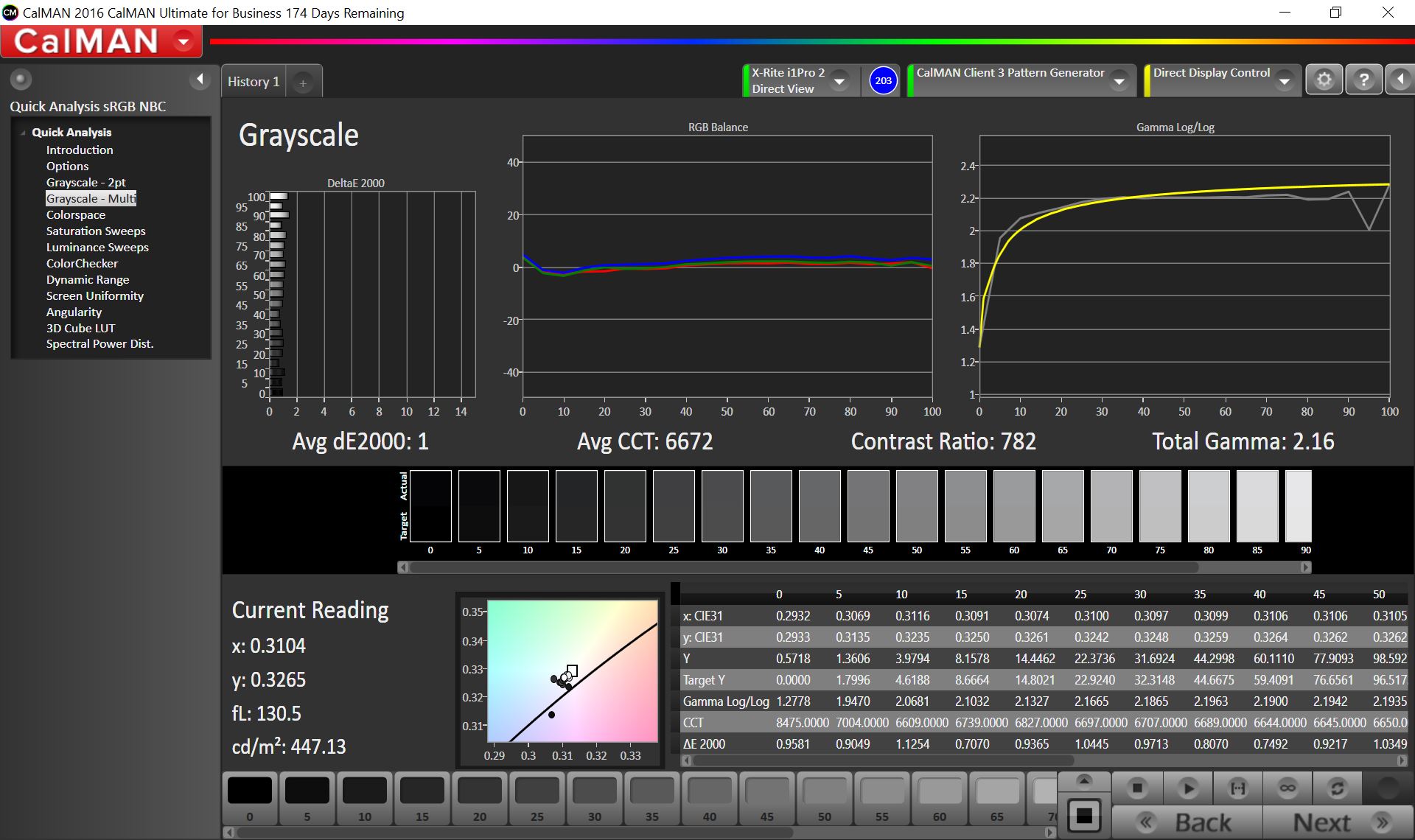 ΔE Greyscale Calman: 1 | ∀{0.09-98 Ø5}
