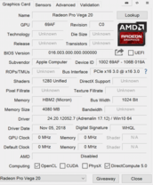 Für die Beurteilung der OpenGL-Leistung eignen sich die Benchmarks der Unigine-Serie (Heaven & Valley), da diese auch für macOS verfügbar sind. Ein direkter Vergleich mit dem Bootcamp-Ergebnis zeigt zudem einen spürbaren Leistungsunterschied zugunsten von macOS. Ansonsten liegt die Vega 20 auf dem Niveau der GeForce GTX 1050 Ti Max-Q im Dell XPS 15 und zwischen den beiden mobilen Workstation-GPUs Quadro P2000 und Quadro P3000. Da die beiden mobilen Workstations von Dell (Precision 5530) und Lenovo (ThinkPad P1) maximal mit der Quadro P2000 bzw. P2000 Max-Q verfügbar sind, hat das Apple Notebook hier einen Vorteil.