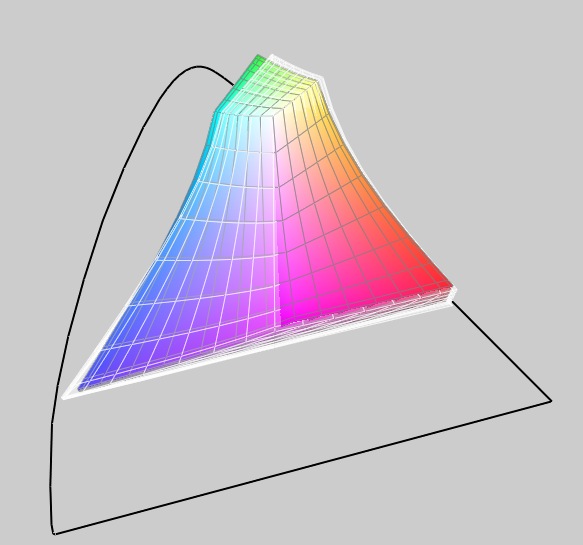 Der darstellbare Farbraum des 1440x900 Panels ist vergleichbar mit den Displays der 2009er MacBook Pro Modelle und damit ungefähr sRGB abdeckend. Im Vergleich zum 13" MacBook White ist der Farbraum deutlich größer, trotzdem muss er sich vom RGB LED Display des Dell XPS 16 geschlagen geben.